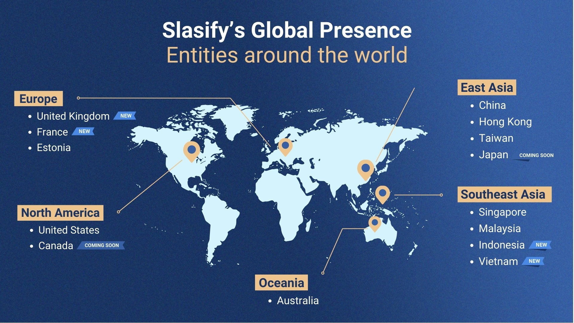 Beyond operating our own entities, we have rigorously vetted over 120 high-quality global suppliers to ensure exceptional service quality, whether on our own platforms or through our partners. Slasify stands out not only as a supplier but also as a vital partner for companies going global. Our unique approach combines digital platforms with professional services; while our digital platforms efficiently handle highly standardised tasks to reduce costs, our professional service team provides comprehensive strategic support to enterprises.