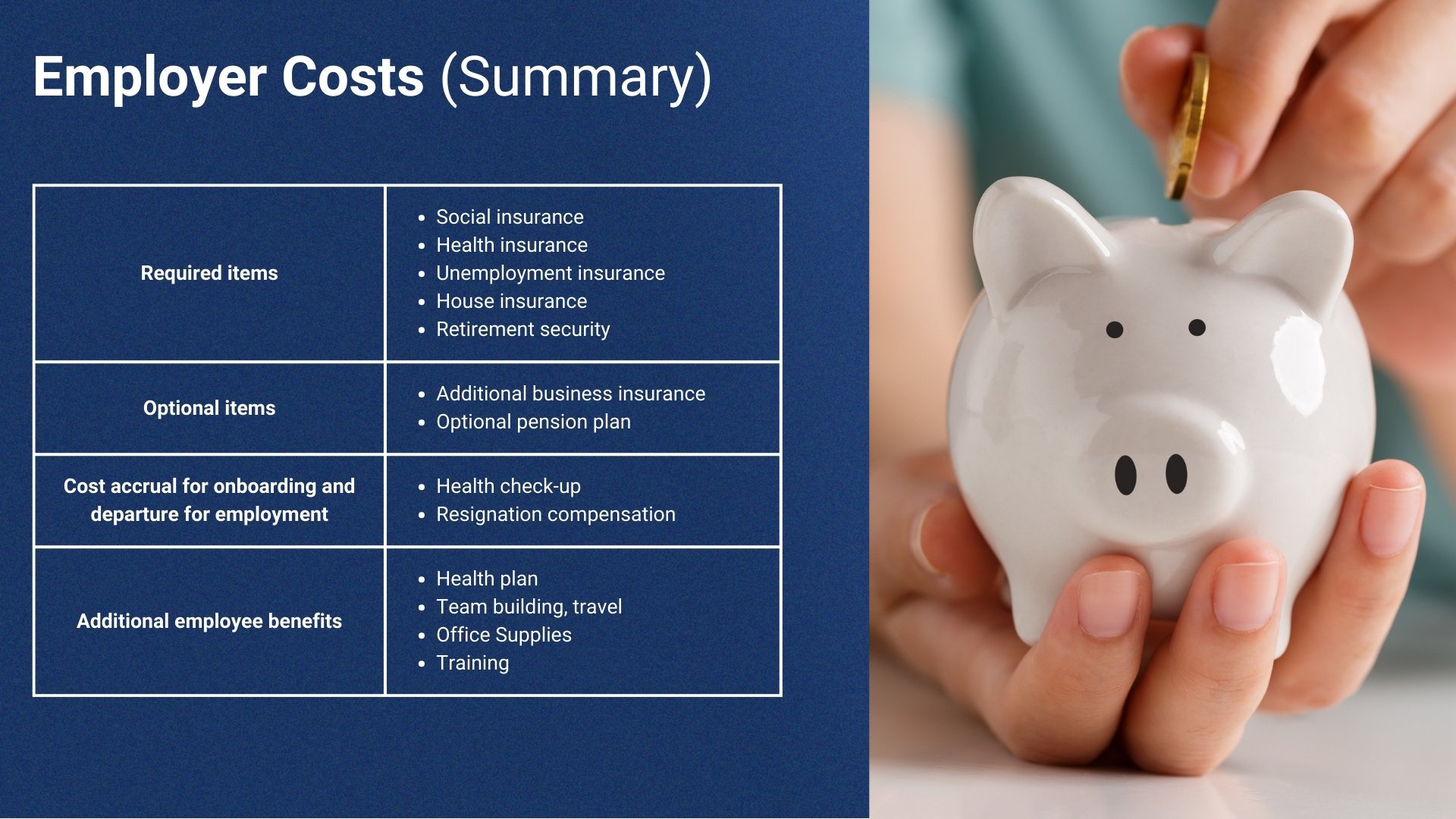 The primary employer expenses are typically related to the social insurance systems of the countries where employees reside, with these systems varying based on each nation’s political framework, economic context, and historical developments. Consequently, companies looking to enter new markets must first gain a basic understanding of these systems. Despite the differences, the challenges can broadly be categorized into several key areas (refer to the table below for more details).